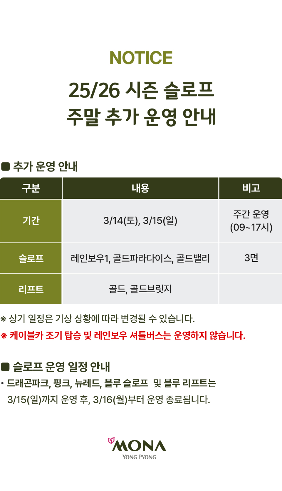 25/26 시즌 슬로프 주말 추가 운영 안내