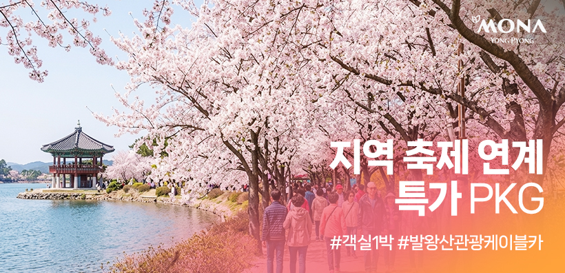 - 상품설명 : 지역 축제 (4월 : 영월 단종문화제, 강릉 경포벚꽃축제 / 5월 : 삼척 장미축제) 기간 객실 특가 패키지