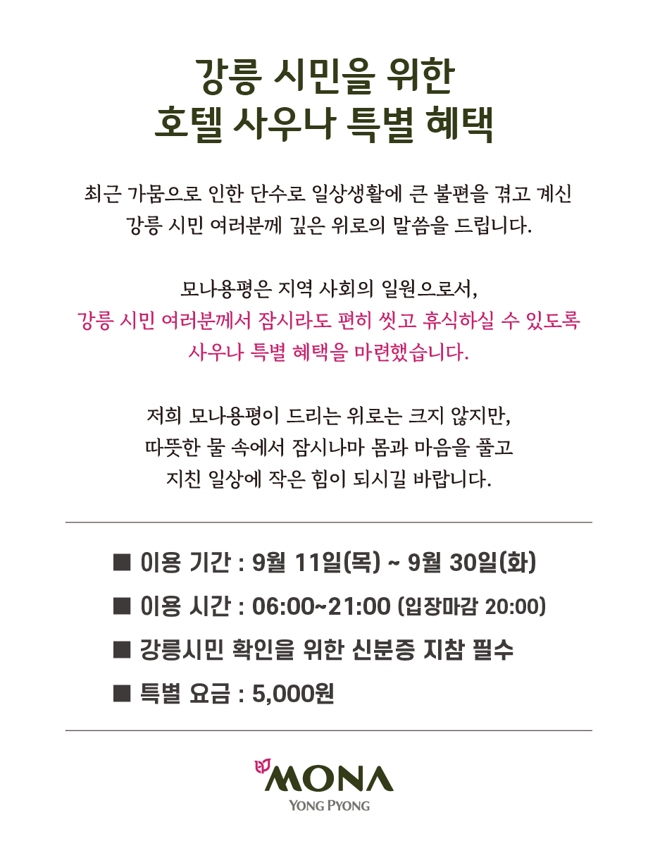 강릉 시민을 위한 호텔 사우나 혜택(9/11~30)